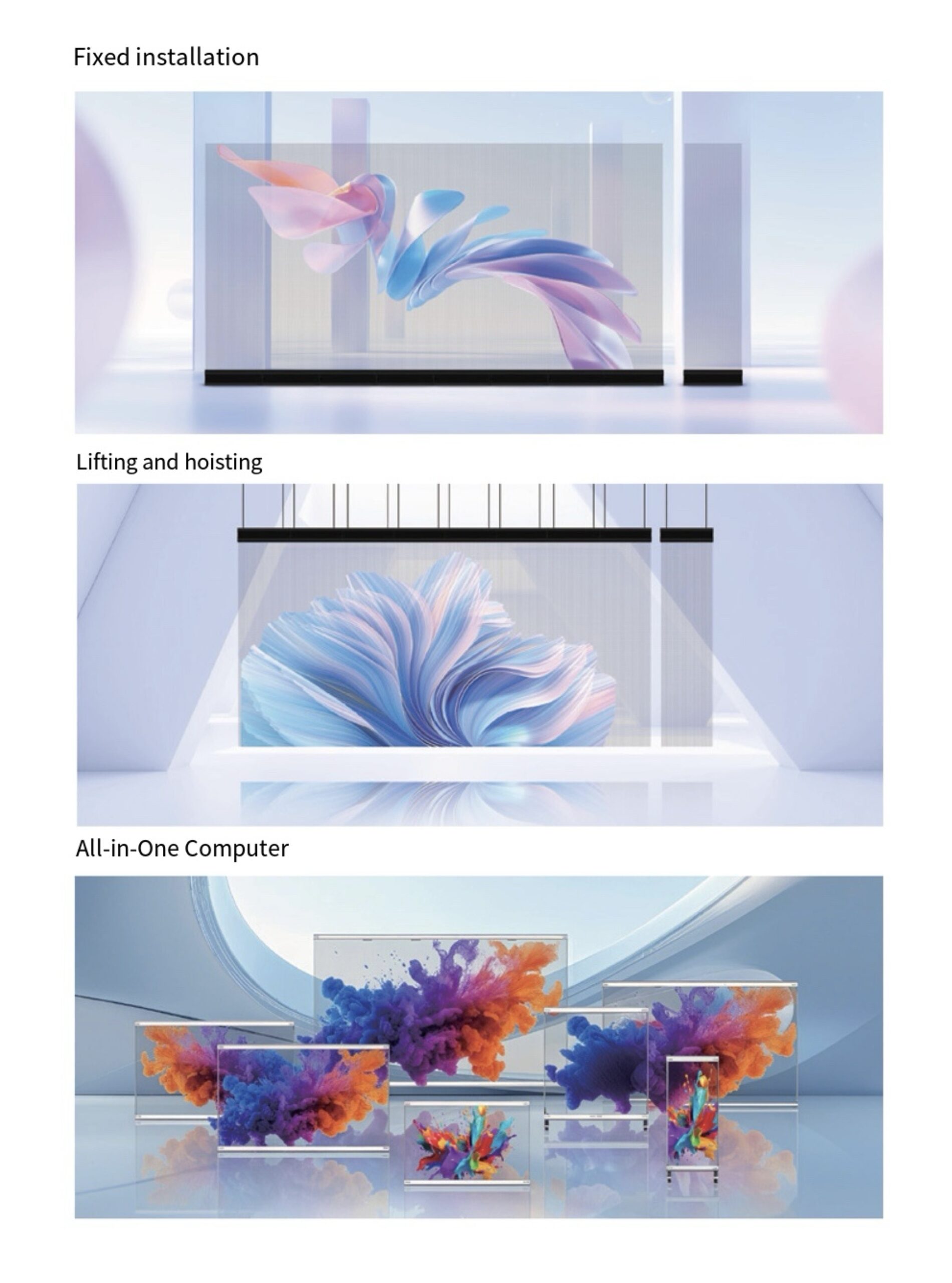 The film screen has a transparency rate ofup to 95%, which does not affect daily lighting. Just gently apply the film screen and connect the signal and power to install it.